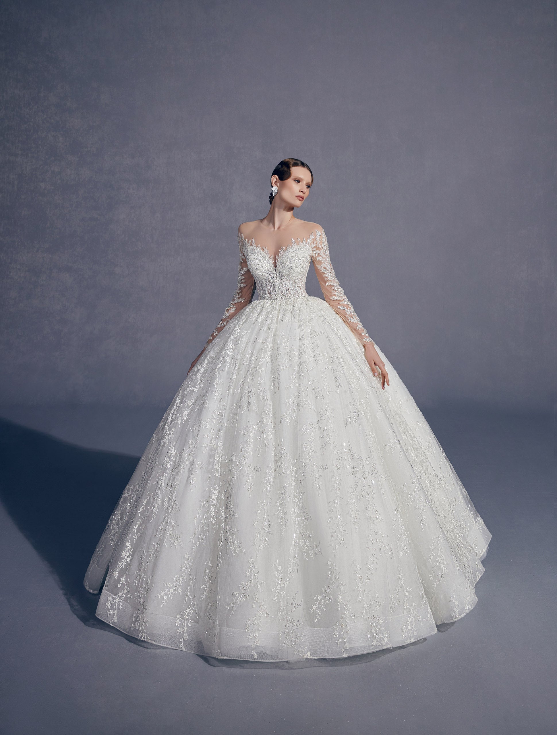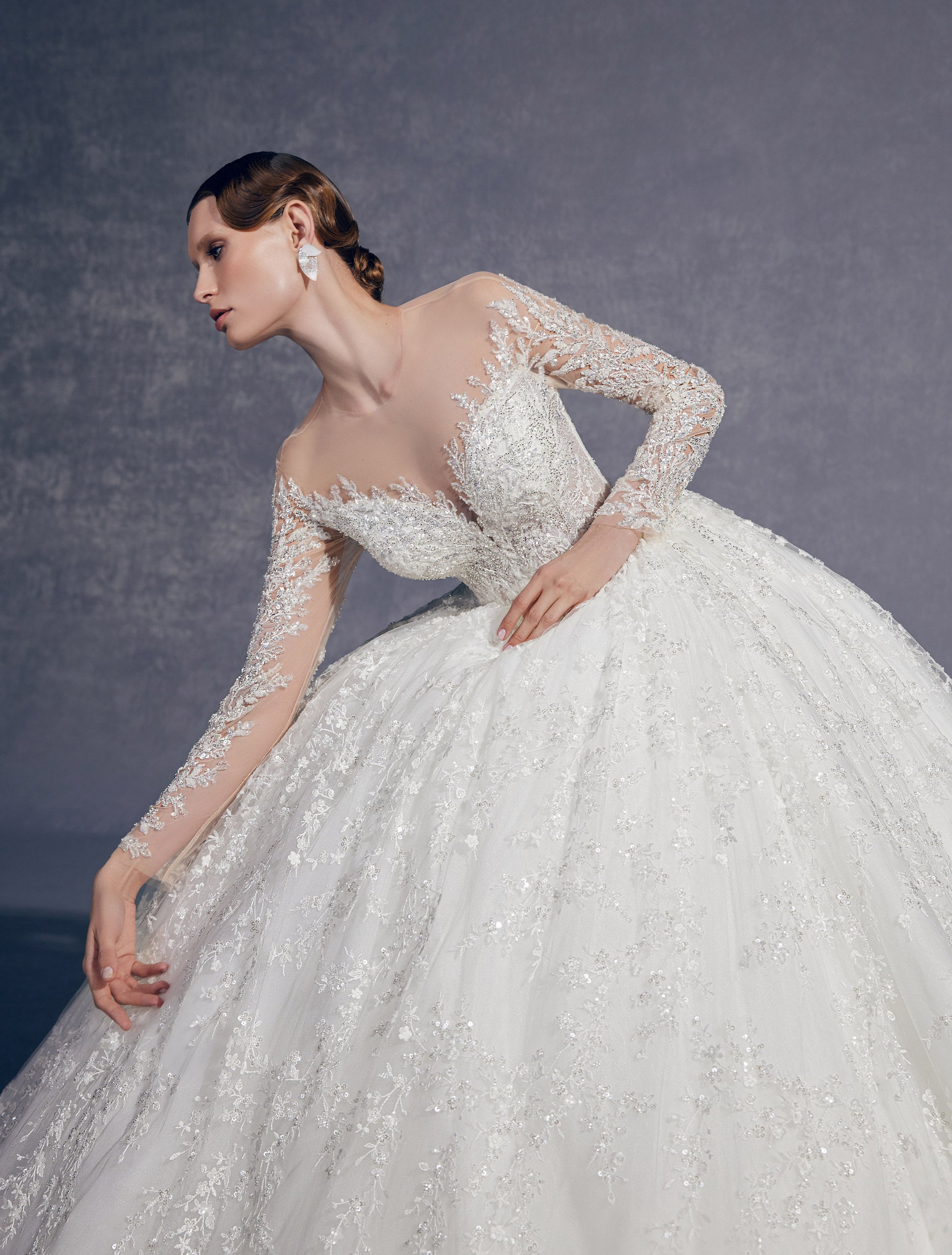 Cromatica antique ivory se îmbină armonios cu țesăturile lucioase și vaporoase pentru un efect de ansamblu romatic, pur. Croiala și dantela reminescentă de stilul victorian transmit ideea unui feminin atemporal, vizual uluitor de proaspăt în contemporaneitate.
